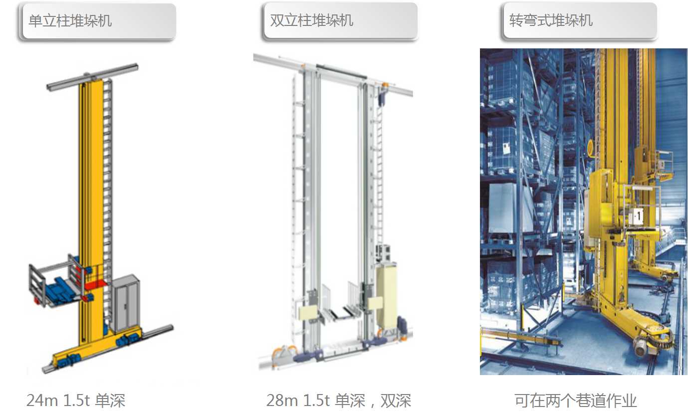 堆垛機是自動化倉儲系統的核心部件。是倉儲系統中的主要執行設備。負責將貨物存入或取出內部貨架。載重量從50kg到4t不等。